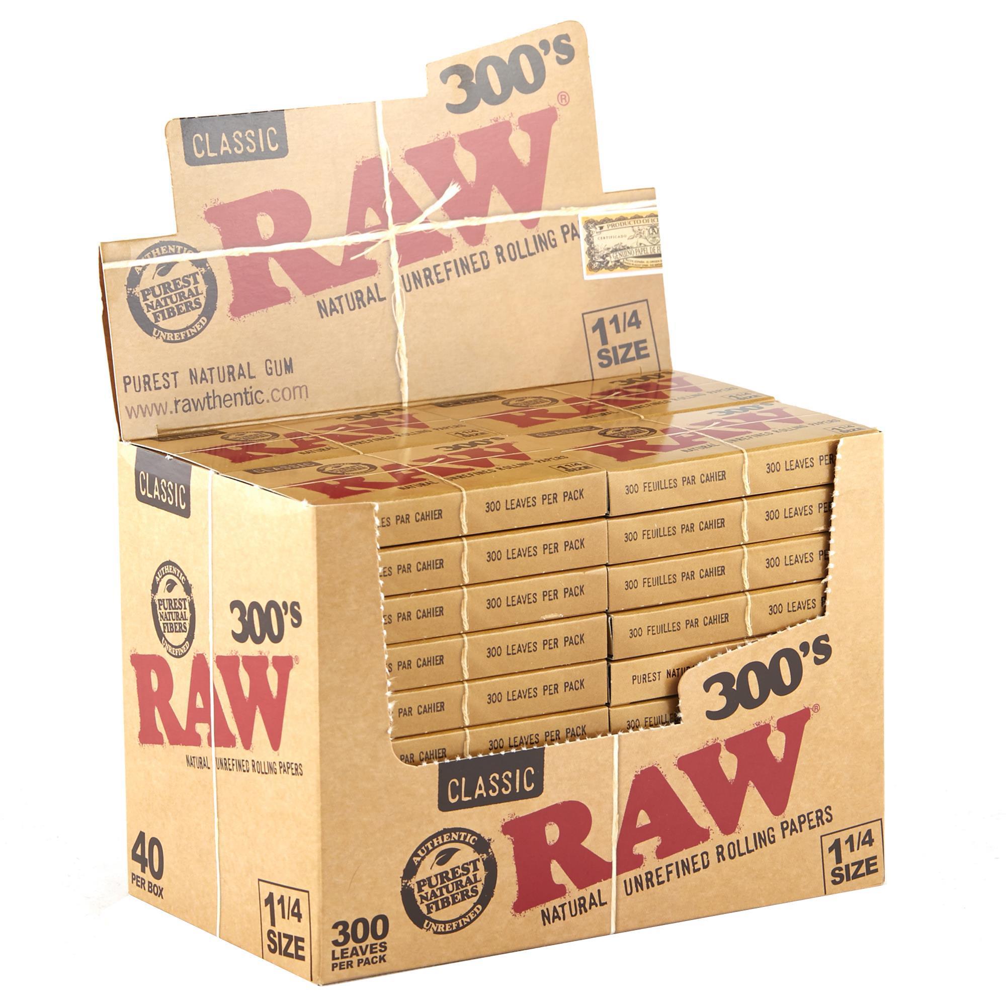 300-pack of classic Raw unbleached rice papers, in a creaseless tray.